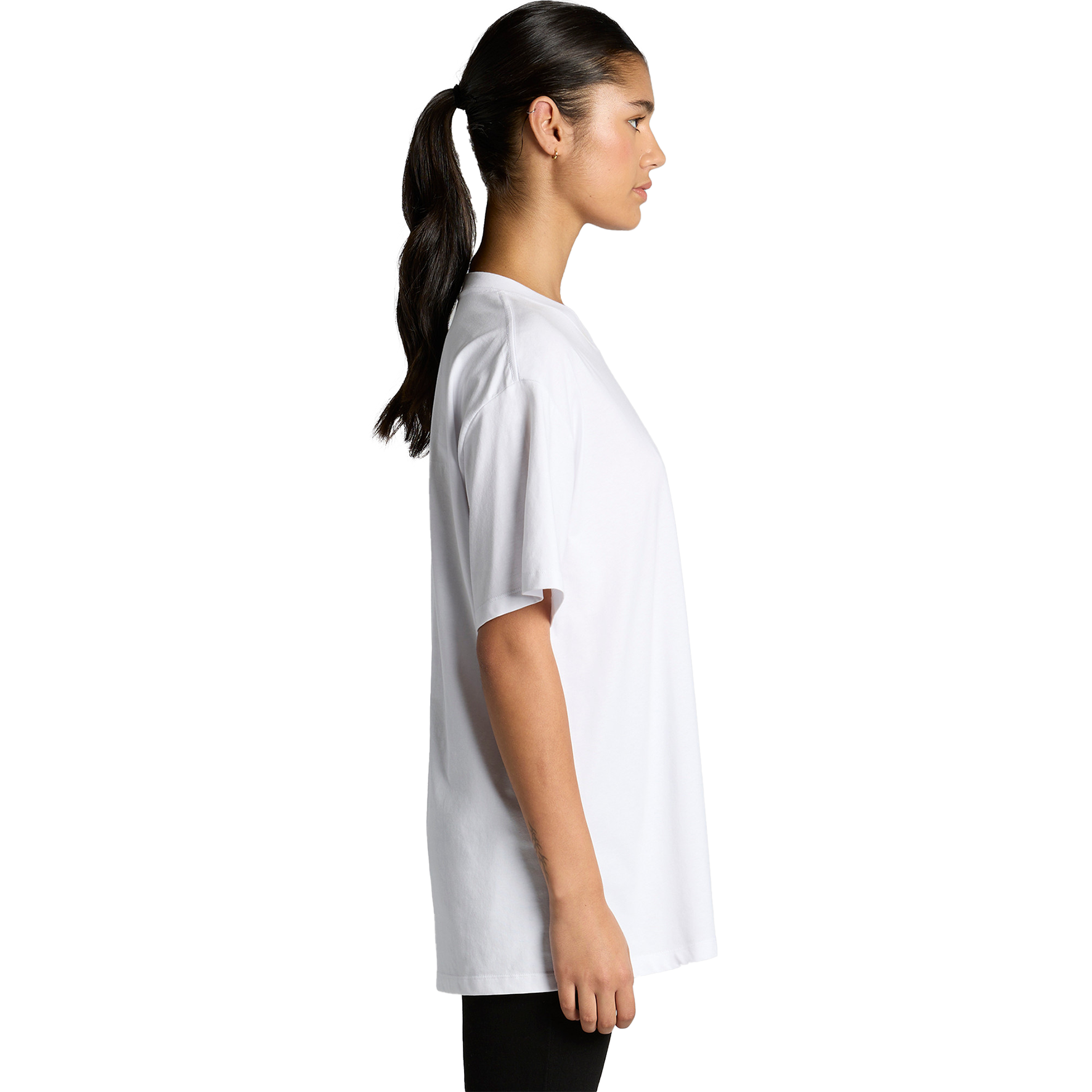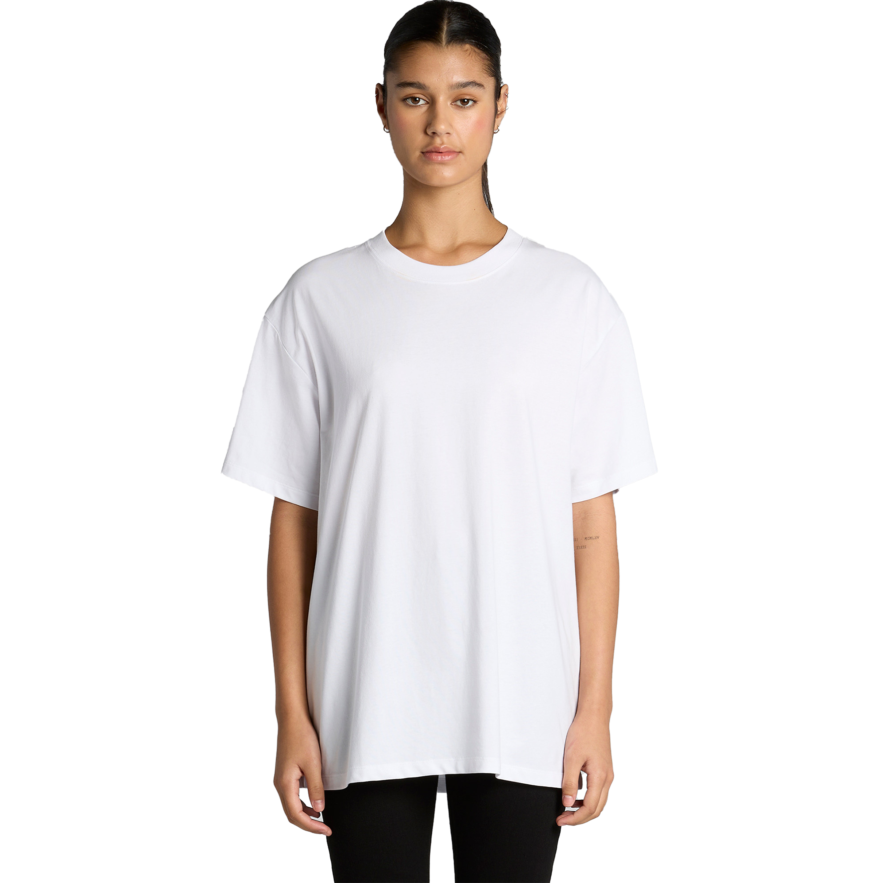 - Neck ribbing, drop shoulder, oversized fit, long length, side seamed, shoulder to shoulder tape,